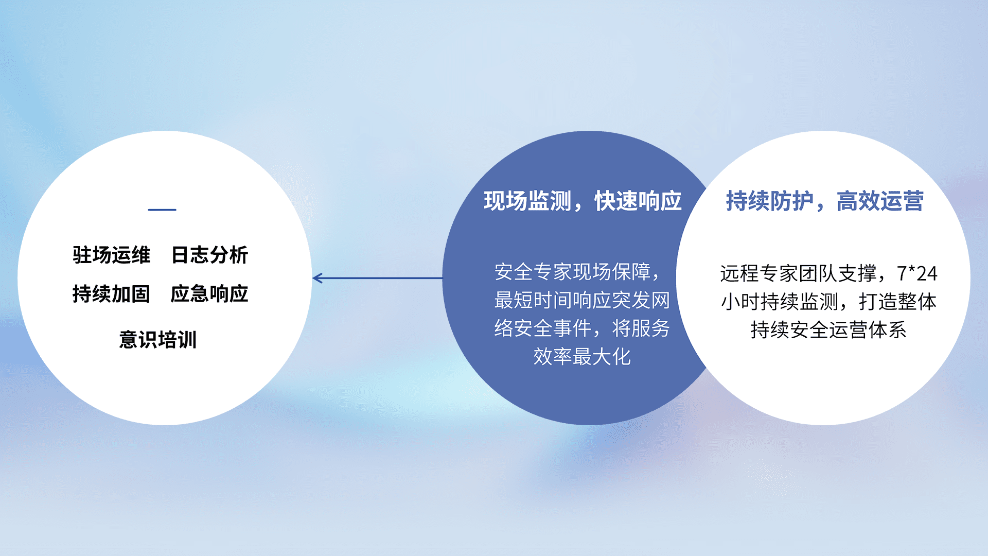 7X24小时持续监测安全事件,保持安全策略有效性,降低资产脆弱性风险,,精准拦截黑客攻击,,,,减少被黑客利用的机会,,第一时间遏制,,降低损失。。